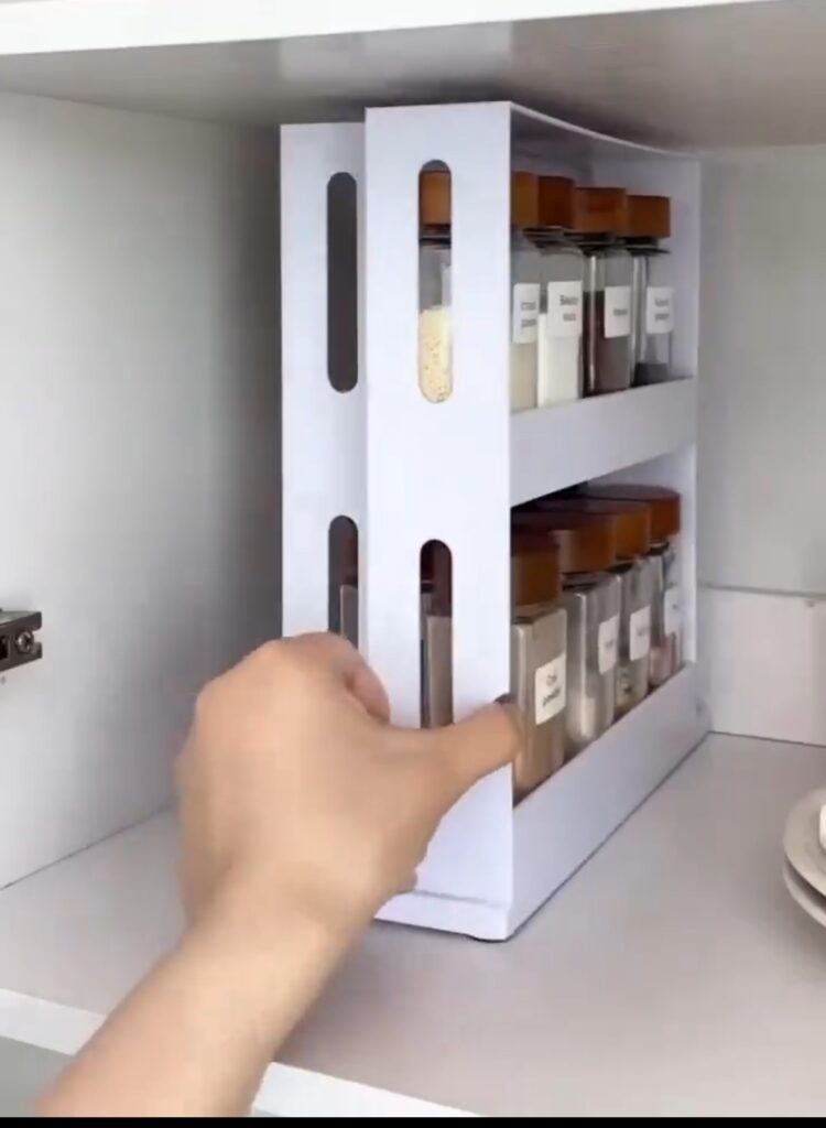 مصنوع من مواد متينة مقاومة للصدأ، يناسب كل أنواع خزائن المطبخ ويضيف لمسة ترتيب وأناقة.