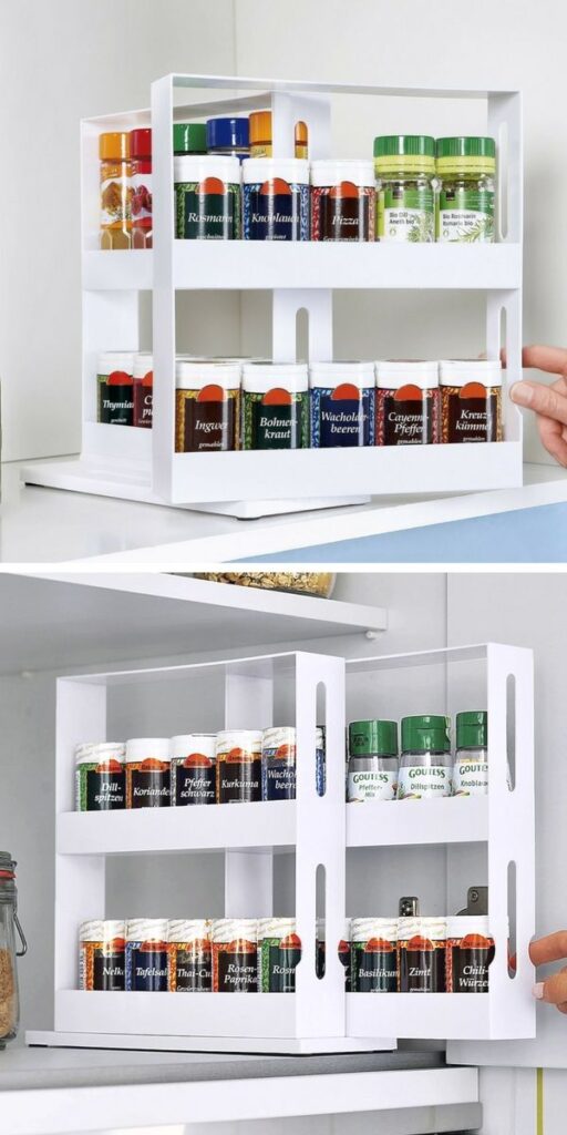 هذا الرف العملي للتوابل هو الحل المثالي لتنظيم كل عبوات التوابل والزيوت بطريقة أنيقة وسهلة الوصول.